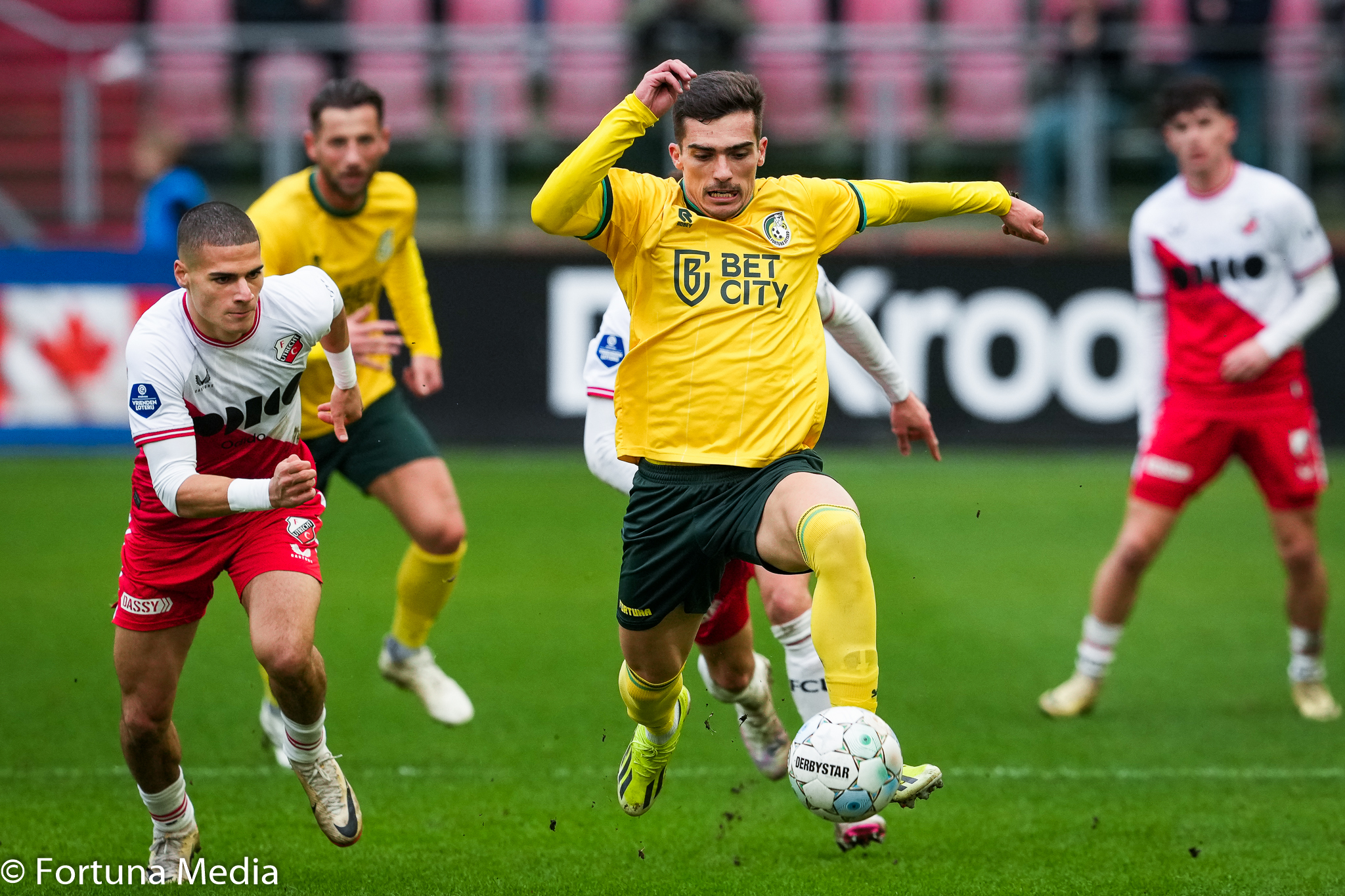 Vooral de twee backs zijn aan zet en via Dijks en Pinto probeert Fortuna gevaar te stichten. Al bij al lukt dat ook nog. Het doel ligt onder vuur, maar juist dat laatste tikje kan niet worden gegeven. Telkens ligt een bal niet goed, kan er niet worden gekopt of verandert een Utrechter de richting van de bal.