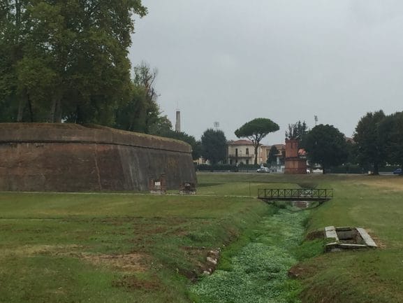 Na het stadionbezoek lopen we uiteraard ook het centrum van Lucca in. Een mooi, oud stadje maar de aanhoudende regen nodigt helaas niet uit om hier urenlang te vertoeven. We gaan verder richting Pisa. Een ritje van ongeveer een half uur rijden over de regionale binnenwegen.